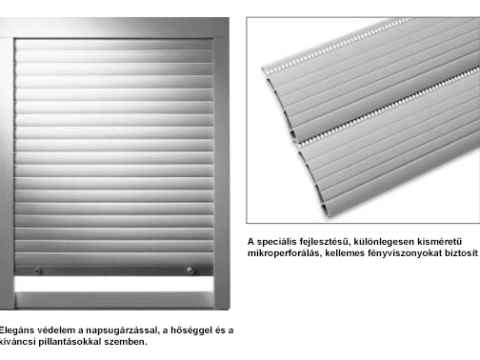 Zsaluziák: C 80, S 90, Z 90 lamellás kézi, és motoros működtetéssel